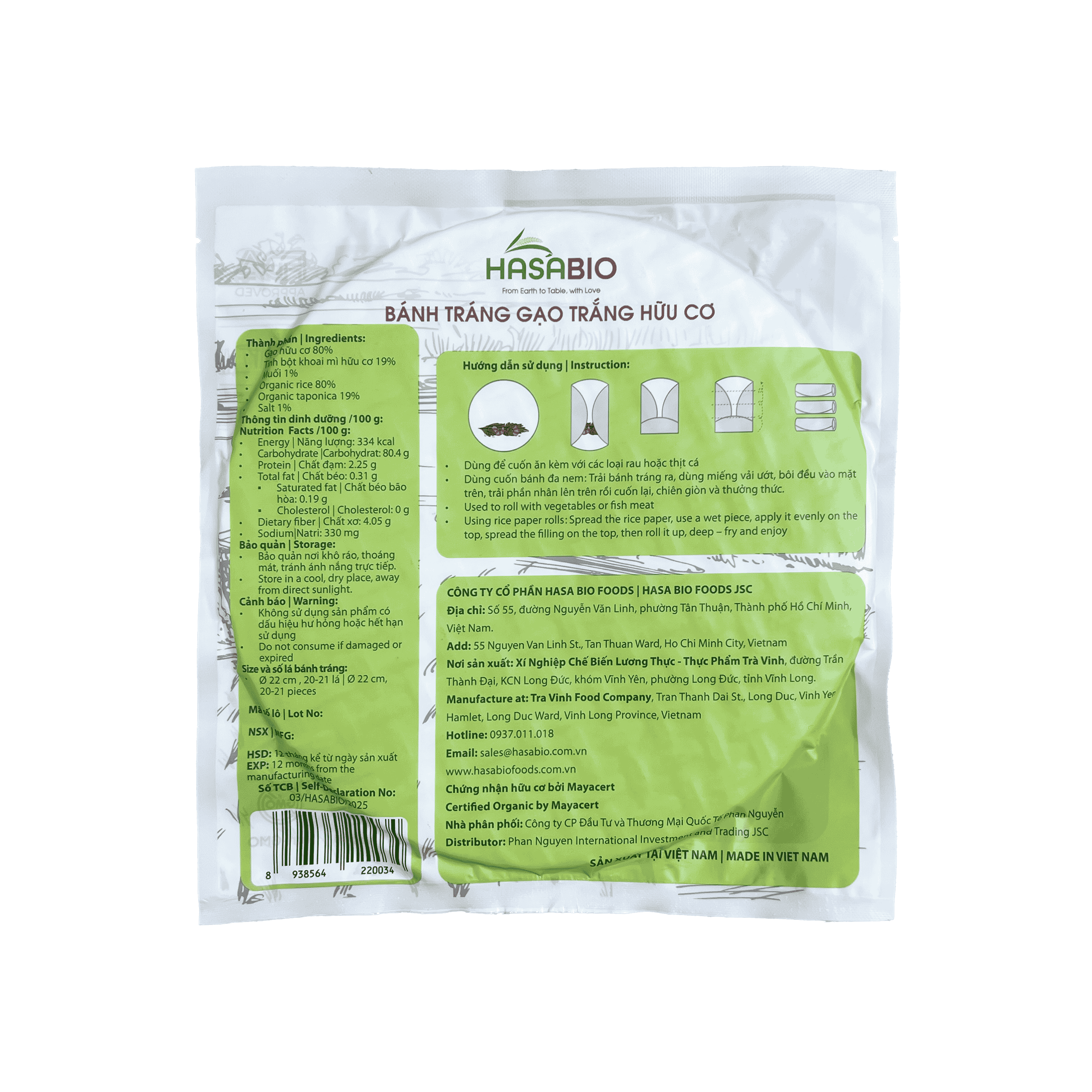 Thành phần: Gạo hữu cơ 80%, tinh bột khoai mì hữu cơ 19%, muối 1%