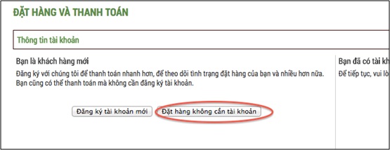 2. Tại trang đăng nhập, Quý khách chọn “Đặt hàng không cần tài khoản”