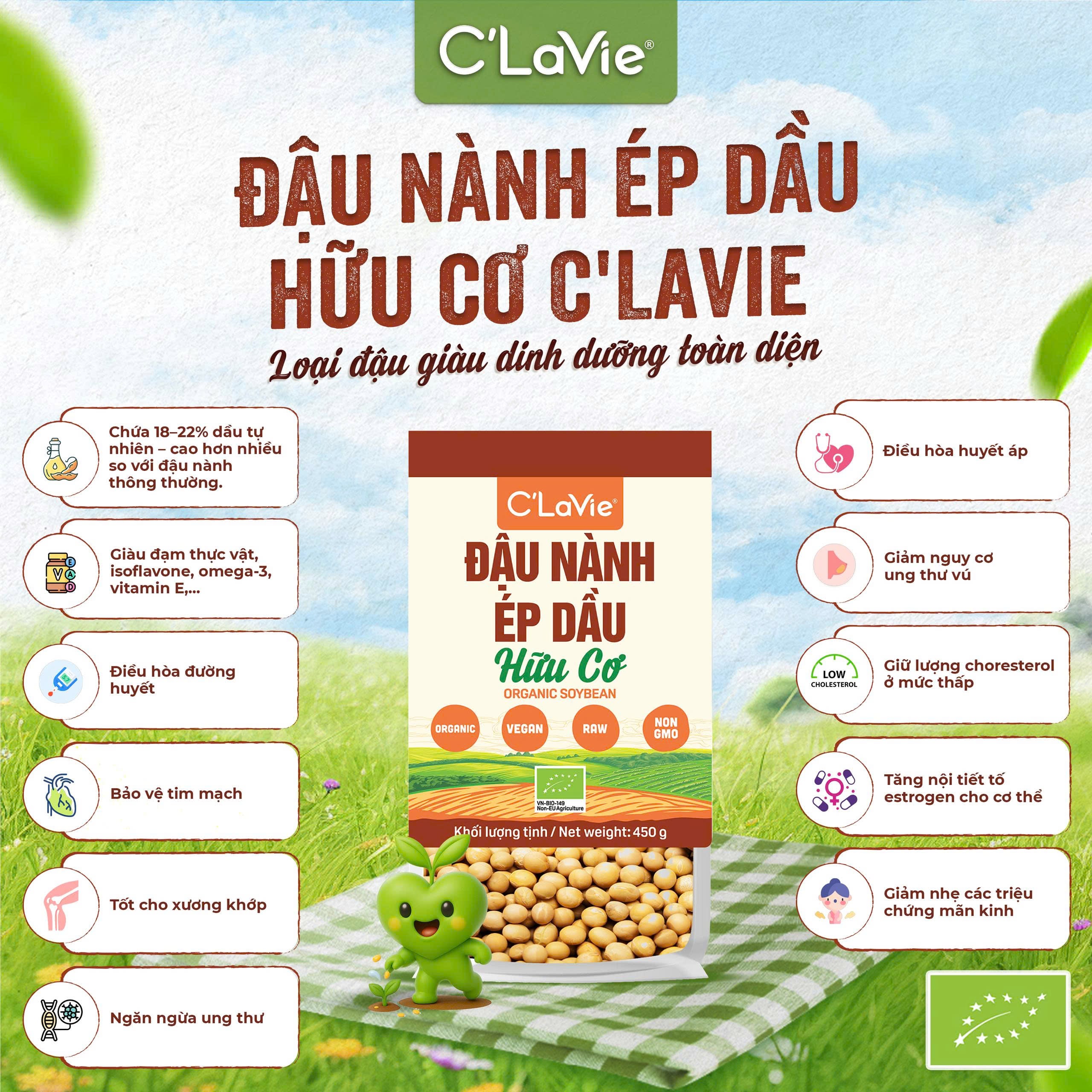 Đậu nành ép dầu hữu cơ C'LaVie - Loại đậu giàu dinh dưỡng toàn diện