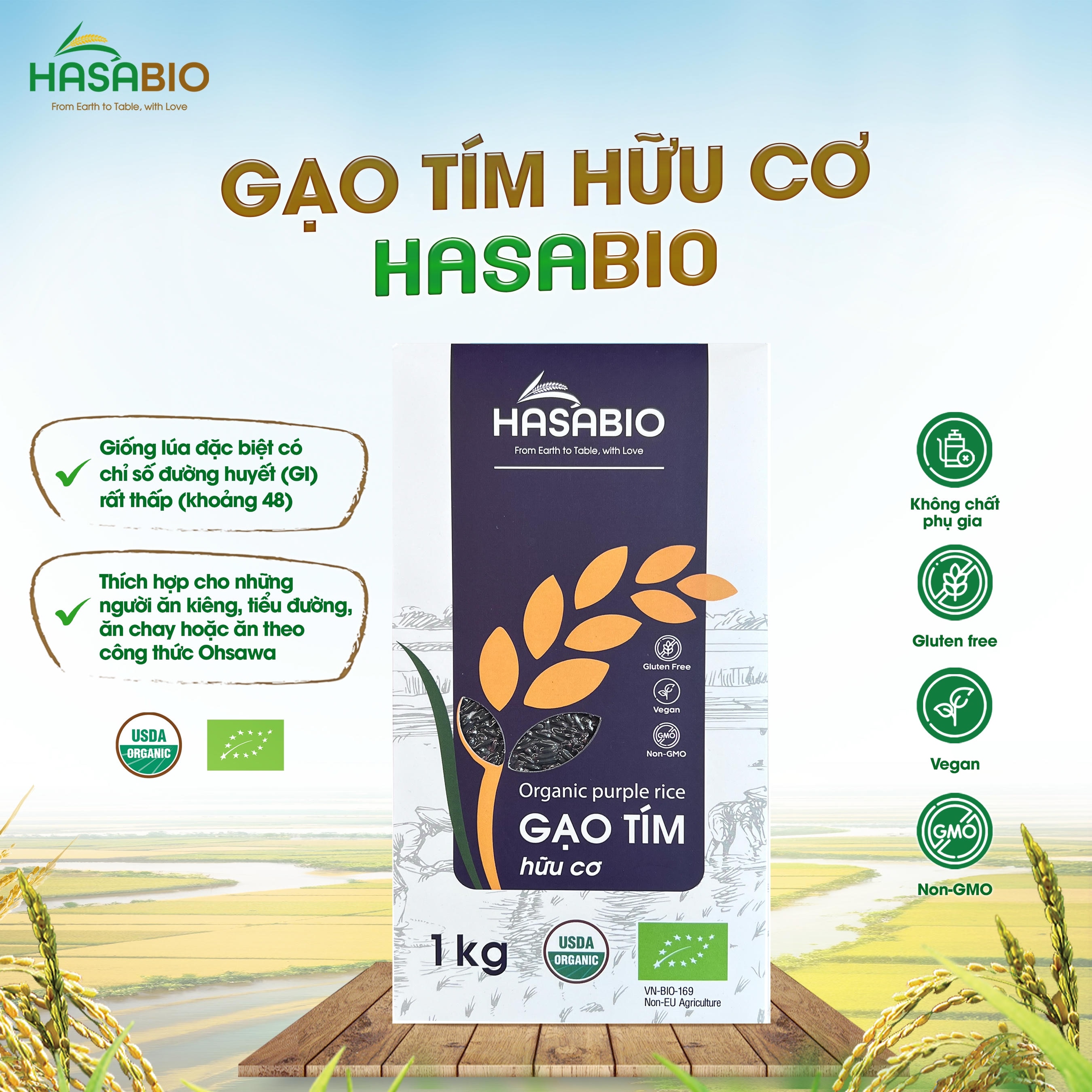 Hướng dẫn sử dụng: Giống lúa đặc biệt có chỉ số đường huyết (GI) rất thấp (khoảng 48), rất thích hợp cho những người ăn kiêng, tiểu đường, ăn chay hoặc ăn theo công thức Ohsawa. Cơm mềm, dẻo dễ ăn