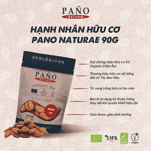Đặc điểm nổi bật của Hạnh nhân hữu cơ Pano Naturae 90g: