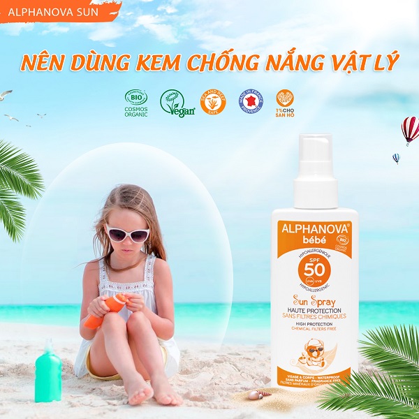 - Kem chống nắng hữu cơ cho bé SPF50 dạng xịt Alphanova BeBe 125g: Phù hợp với bé từ sơ sinh trở đi.