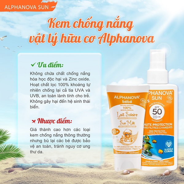 Các dòng sản phẩm kem chống nắng hữu cơ cho bé của Alphanova: