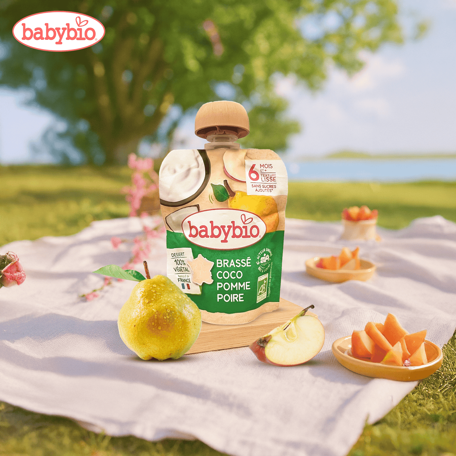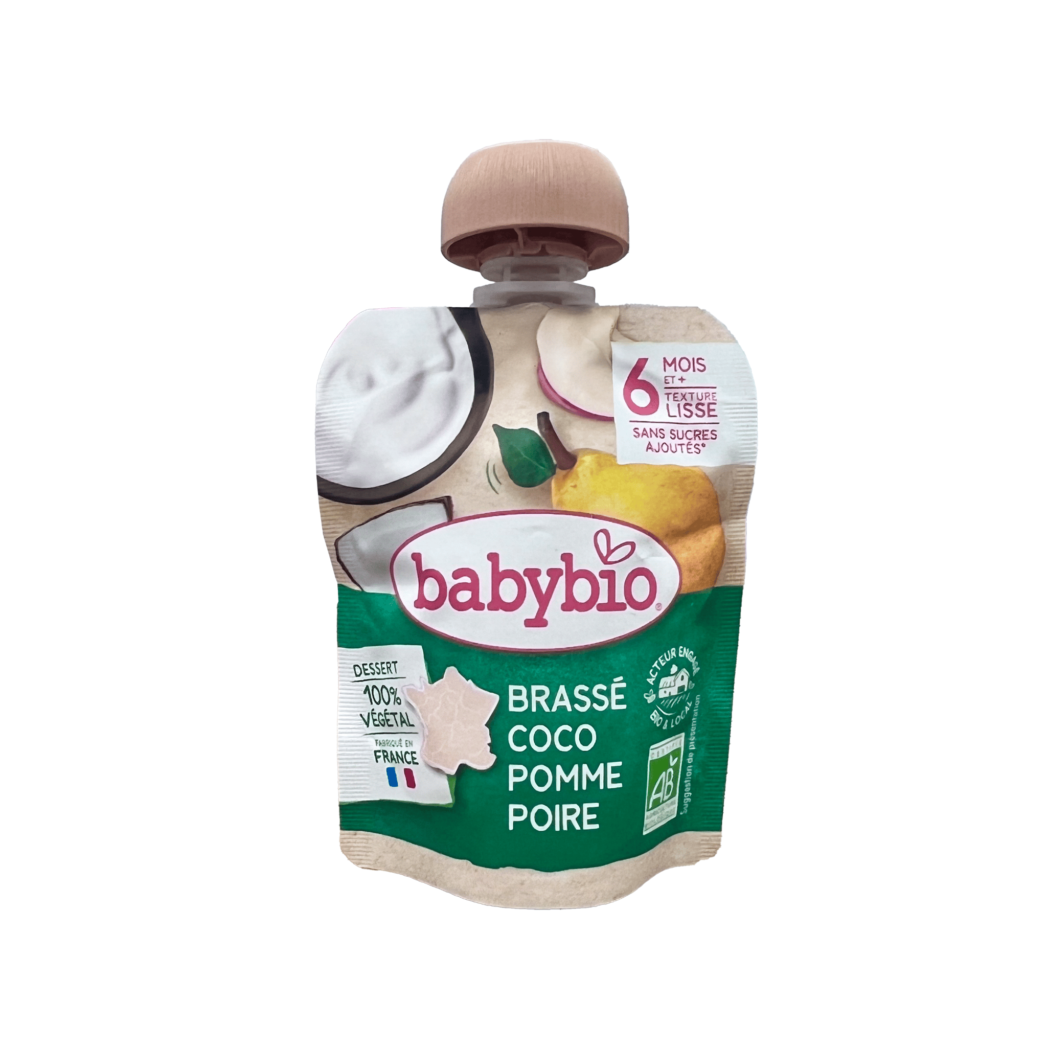 Thành phần: Sữa dừa* 20% (dừa*, nước), táo* 20%, lê* 20%, nước, đào* 15%, gạo* 7%, nước cốt chanh cô đặc*.