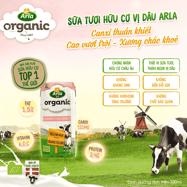 Nhờ vậy mà sữa hữu cơ vị dâu Arla Organic không chỉ có hương vị thơm ngậy mà còn giàu dinh dưỡng tự nhiên từ thiên nhiên: