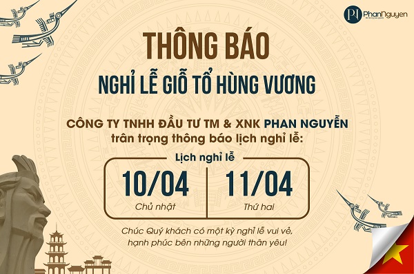Công ty TNHH Đầu tư TM&XNK Phan Nguyễn trân trọng thông báo tới Quý đại lý về thời gian nghỉ lễ Giỗ tổ Hùng Vương 2022 của công ty như sau: