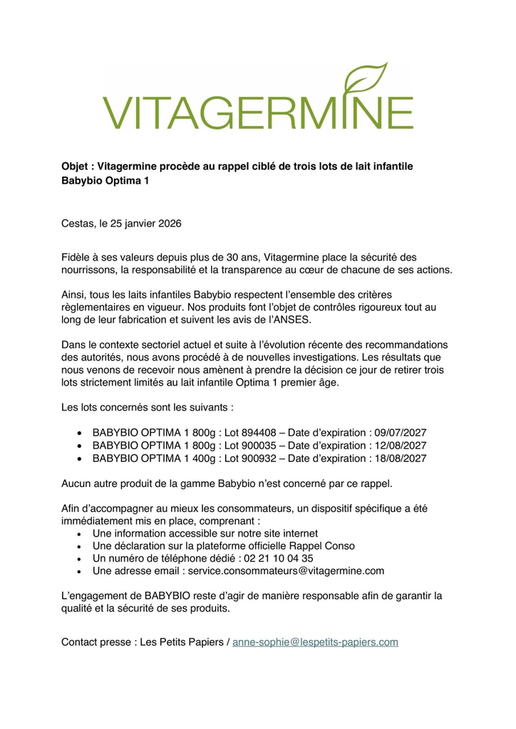 Phan Nguyễn xin gửi THÔNG BÁO Sản phẩm Babybio tại thị trường Việt Nam KHÔNG BỊ ẢNH HƯỞNG bởi việc thu hồi tại thị trường Pháp.