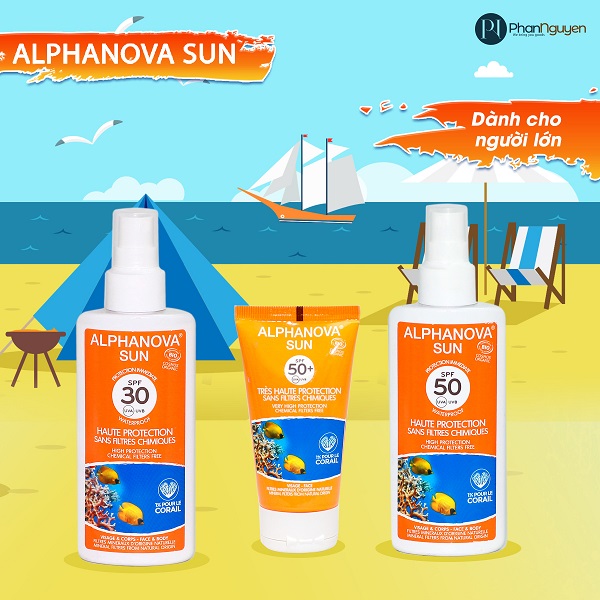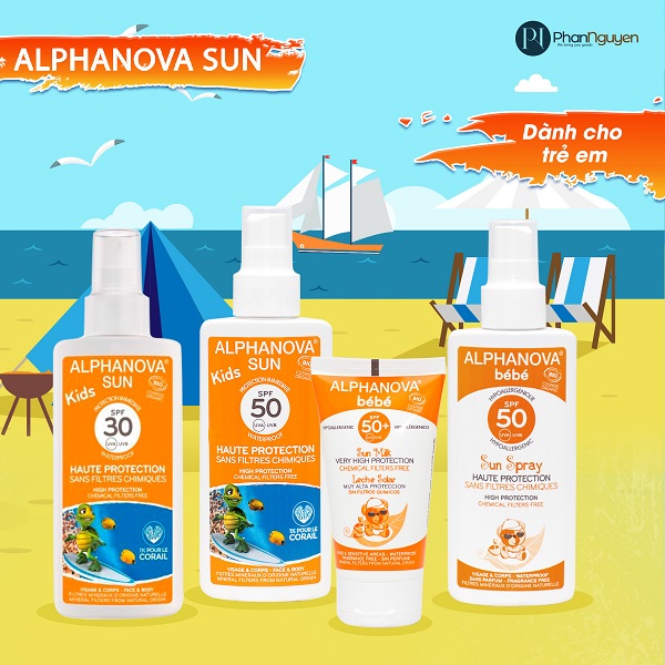 Các dòng sản phẩm kem chống nắng hữu cơ cho mẹ và bé Alphanova: